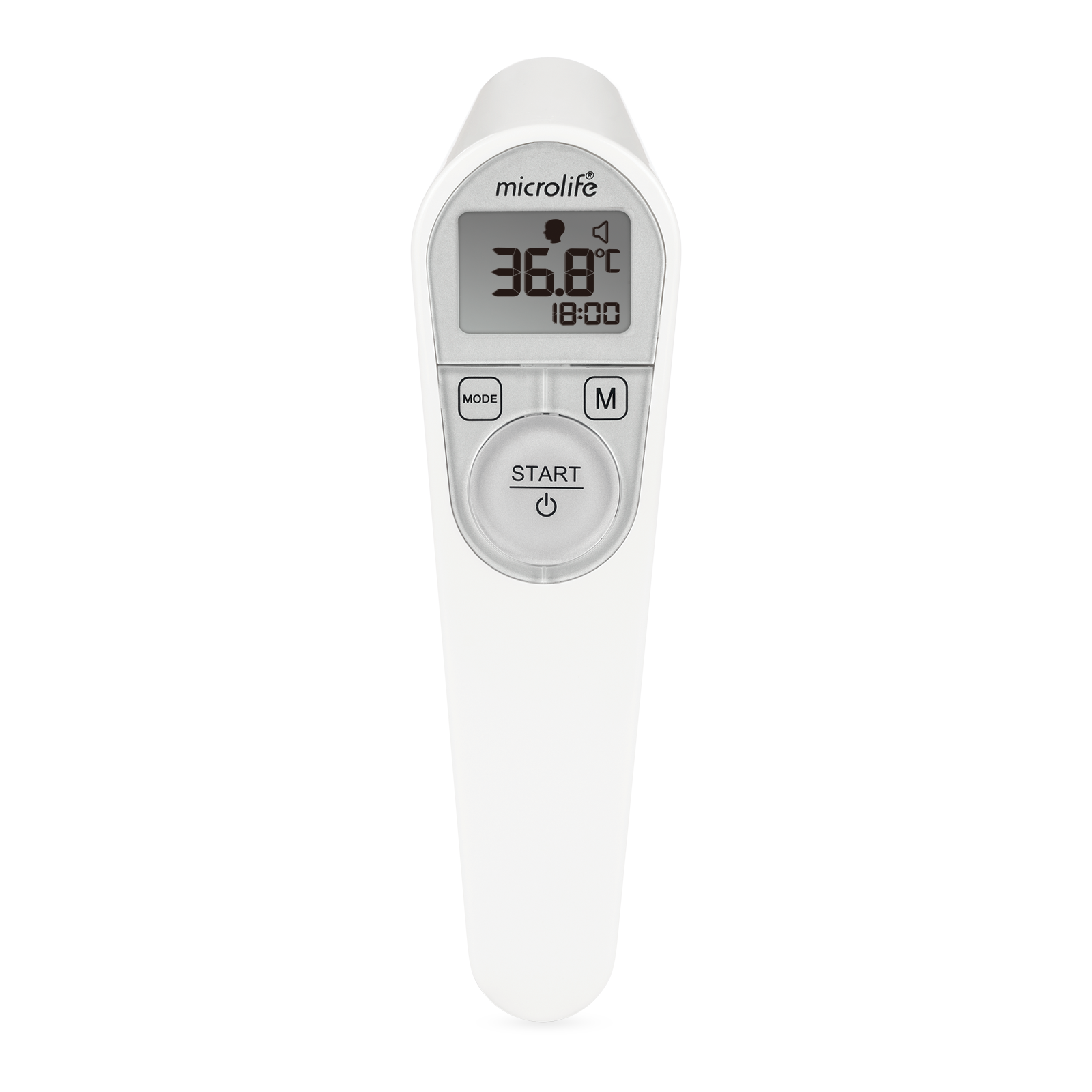 Le NC 200 de Microlife est un thermomètre infrarouge testé cliniquement conçu pour la mesure de la température corporelle et de celle des objets. Avec son design ergonomique, il vous permet de prendre facilement et en douceur des mesures précises sans que le thermomètre n'entre en contact avec le patient. Il est doté de nombreux avantages qui lui permettent d'établir un diagnostic à domicile fiable et innovant, et ce, grâce à une meilleure précision, une meilleure qualité et une plus grande fiabilité. La prise de mesure se fait automatiquement dès lors que le thermomètre détecte la présence du front à une distance comprise entre 1 et 5 cm. Grâce à son témoin lumineux situé au-dessous du thermomètre, le système de guidage pour l'auto-mesure indique à l'utilisateur que le thermomètre est à la bonne distance par rapport au front du patient et que la mesure est terminée. La technologie Silent Glow TM et son changement de couleur d'affichage donnent des informations directes sur la température mesurée : lumière verte (température jusqu'à 37,4 °C), lumière rouge (température supérieure à 37,4 °C). Le grand écran rétro-éclairé permet de lire facilement la mesure sans avoir à déranger votre enfant pendant son sommeil. Doté d'une mémoire de stockage jusqu'à 30 mesures avec la date et l'heure, il est possible de suivre les variations de température sur une période donnée et de surveiller les tendances.